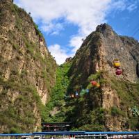 北京龙庆峡景色一级棒,一定要坐船。带父母去的龙庆峡自驾游,拖家带狗,所以选择了难度系数为零的摆渡车-船-缆车的方式,全程很轻松,景色很棒,只是没有任何难度系数就看到的美景,完全没有欣喜的感觉,大概虐一下爬上去才爽吧。唯一的小插曲,在山上赶上
