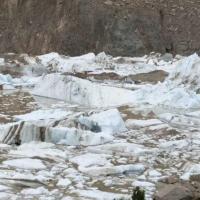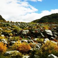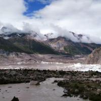 从然乌湖去往来古冰川,要将近1小时车程才到达。冰川山下有藏民收门票,除了特权车辆可以开到观景台,其他人都只能步行或收费骑马上去。来古冰川海拔有4000左右,走到观景台大概20分钟。其实观景台离冰川还有一段的距离,中间隔着全是大大小小的乱石堆