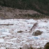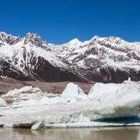 到了以后发现来古冰川和想象中的冰川一点也不一样,从观景台看,不是印象中与雪山连接在一起,而是在一大片乱石滩下面,冰块都漂在水上,看上去湛蓝湛蓝的