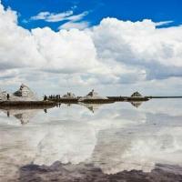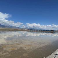 茶卡盐湖也叫茶卡或达布逊淖尔,位于青海省海西蒙古族藏族自治州乌兰县茶卡镇。茶卡镇地处109、315国道交汇处,是古丝绸之路的重要站点,东距西宁298公里,西距州府德令哈200公里,被誉为柴达木东大门,历史上是商贾、游客进疆入藏的必经之地。在这里,可以乘小火车深入湖中观光,可以观看现代化大型采盐船采盐时喷水吞珠的壮丽场景,可以欣赏盐湖日出和晚霞的绚丽画卷,还可以透过清盈的湖水,观赏形状各异、正在生长的栩栩如生的朵朵盐花,探求湖底世界的神秘。