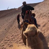 柏孜克里克千佛洞,老实说,千佛洞的佛像基本上丢失光了,只剩一些残垣壁画。但是千佛洞旁边有骑骆驼的活动,上下山来回100元,感觉挺值得体验下,赶骆驼的人拍照技术了得,很会跟我们安排背景和pose拍照片