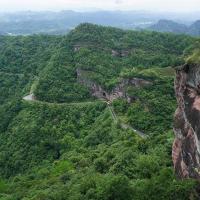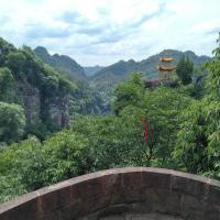 齐云山这里的人流量相对来说比较少!景色却一点都不错吧!红旗招展之下!喜气洋洋!有索道上山下山所以一点都不累的!人少,适合慢慢闲逛品味,出了财神庙右转的景色有惊喜!
