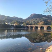 去休宁齐云山的时候就住在横江边上的民宿,在江边随便走走就遇到了民宿照片里的登封桥,桥是典型的徽派建筑。远远看上去古朴安然,距离不远有一个类似于水坝的小桥和水面同高,人走在上面仿佛水上漂。