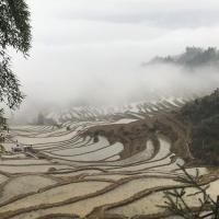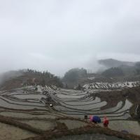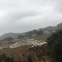 丽水有多处梯田,云和梯田名声较大,有九曲云环和白银谷两处,我去的是前者。自驾上行弯弯绕绕,道路在修建拓宽中,指路设施等还不完备,节假日路边停车有点拥挤。因雨雾天气路段较堵,没有前往白银谷和坑根古镇、七星墩。不过九曲云环的天簌云和观赏点已是不