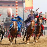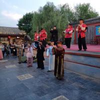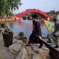 清明上河园穿越剧大杂烩,有花架子迎宾表演,有大型马战,有民间绝技,还有现代时髦歌舞,表演不断,都很精彩,风景也不错,还有各种小吃可以品尝。很棒啊,感觉很值得。