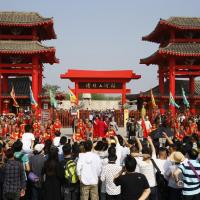 清明上河园坐落在开封市龙亭湖西岸,是国家首批5A级旅游景区和中国非物质文化遗产展演基地。它以《清明上河图》为蓝本,将宋朝市井文化、民俗风情、皇家园林、古代娱乐结合于游客参体验中,再现了古都汴京千年繁华的胜景。集历史文化旅游、民俗风情旅游、休闲度假旅游、趣味娱乐旅游和生态环境旅游于一体的主题文化公园。