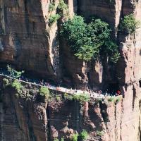 去郭亮村要经过一条挂壁公路,从山体内部造出一条狭窄的位于太行山陡峭悬崖的山腰处,站在悬崖往下看胆战心惊,由于这种特殊的地理位置和生态环境,郭亮村以独特的景色以及挂壁公路和绝壁长廊而闻名。