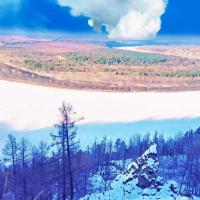在北极村悠闲的呆了两天第三天拼车一起去了北红龙江第一湾…想看龙江第一湾得先爬到山上总共有900多个木台阶有的地方陡有的地方窄…但是爬上去看见美丽的景色真的很难形容(本来想说祖国大好河山但是对面是俄罗斯虽然在以前是我们的领土=_=)冬天和现在
