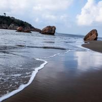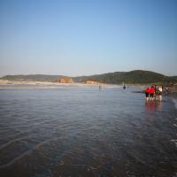 基湖沙滩是嵊泗最出名的海滨浴场,绵长的海滩沙质细腻,适合游泳、踏浪,也有卡丁车、沙滩足球、自助烧烤等娱乐项目。沙滩的沙石中有少量的沙蛤、小螃蟹等小动物,晚上打着手电筒捉蟹,是基湖沙滩的又一大乐趣。如果觉得旺季白天的门票略贵,也可以在入夜后买