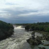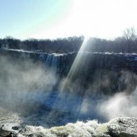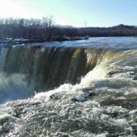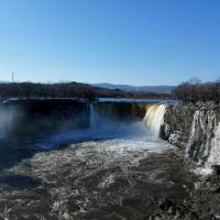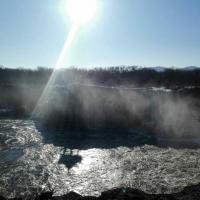 12月到镜泊湖,还没结冰,水流很大,瀑布很壮观,据说1-2月会结冰,冰瀑布应该很好看。
