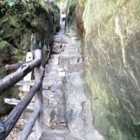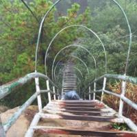 乘坐景区电瓶车到乌龙寨,到达杨家界景区。金鸡报晓观景台值得一看。一步登天需要爬一条简陋单薄、几乎90度的铁梯,建议不要穿裙子。这边游客较少,比较舒适。(到一步登天一定要走地图上的小路,泥泞小道很少人,来回可节省约1小时的路程。)