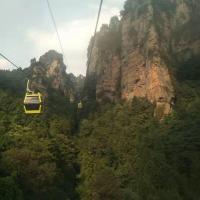 杨家界还是可以的,虽然收费是比较贵,但是一下子就省了很多的路程。毕竟这些地方的话,其实走路起来还是比较的不方便。这里坐索道的话也能够看到周围的景色,还真的是相当的不错,青青绿绿的,而且山头也是特别的多。
