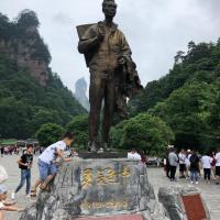 充分利用四日门票,可以分别从武陵源景区和张家界景区,两处正门进入。携程订票的取票点这两处也都很容易找得到。张家界风景区进入途径金鞭溪,沿途有不少大腕题词,我留意了金庸大侠的。走两三百米吧就可以来到黄石寨脚下,现在后山山路在修建,徒步上下都只