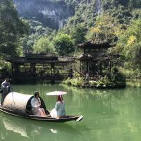 酉阳桃花源景色宜人,有租汉服的,价格合理,穿上拍照很出彩。出口有古镇,很多饭店可以选择。网上买门票很方便的,很好,非常方便。游玩环境好,秩序井然,安全有保障。