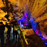 桃花源太古洞全程3公里,里面面积很大,空间很高,打着各种灯光,到处是奇形怪状的钟乳石,让人目不暇接,仿佛穿越时空的隧道到了一个华丽的地下宫殿。洞子的尽头就是桃花源景区。里面花草树木,亭台楼阁,就是一个世外桃源!