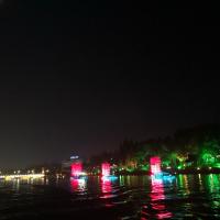 桂林两江四湖景区游,空调船夜游漓江、桃花江、榕湖景区、杉湖景区、桂湖景区、木龙湖景区风景迷人。榕湖到桃花江底下管子排水,木龙湖到漓江穿做电梯,都是亲身体验水涨船高。水上微风徐徐两岸灯光摇曳歌舞升平,只是说是豪华游船却只是臭臭的游船有点可惜