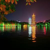 两江四湖在桂林市中心位置,去这个地方很方便,这里环境很美,尤其夜景,坐船游览更漂亮。晚上沿江沿湖逛了半圈,二江四湖只剩木龙湖末走,日月双塔不错,超级赞。
