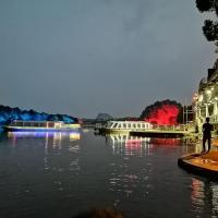 在网上订两江四湖的票取票非常方便,而且当地旅游业不太规范,在网上决对是最低价,夜游景色超美,推荐。首先说的是豪华船与普通船的区别是一个有空调一个没有空调。这个游客自己选择。船上照相要30元取相片。其实取景不怎么样。