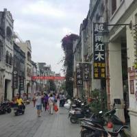 北海老街是我最喜欢的一个地方,感觉想回到老上海,很复古风的一条街,里面很多小吃比较便宜,但我吃不惯,传说的李姨虾饼就在老街,我就吃了几口。由于这里曾经是通商口岸,建筑自然中西合璧了,房子的门也很有特色,特别的细长,让你感觉和越南的极像,应该