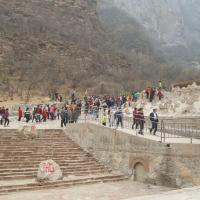 五龙口景区不算很大,进门可做小交通到猕猴王国,步行则需20分钟。猴子数量不少,也比较凶猛。从猕猴王国出来后沿台阶登山,到达电梯(单程线路,电梯上山后可继续游览,并坐滑道下山,不坐电梯需要原路下山)。下山后可继续坐小交通,经十里画廊(临山公路