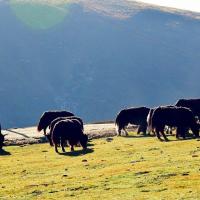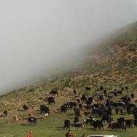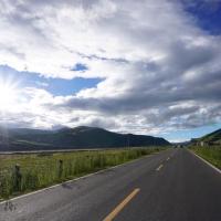 金马草原很美,很漂亮,海拔近4000米,空气变得稀薄,阳光,蓝天,彩云,仿佛伸手即可触摸太阳,牦牛安详的在草地上游荡,还有胖乎乎圆鼓鼓的土拨鼠,超可爱。看到牛羊悠闲的吃草,公路上车辆稀少,草长得很茂盛,听司机师傅说,牛羊要冬季和夏季转草场喂