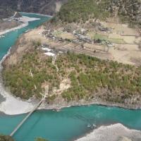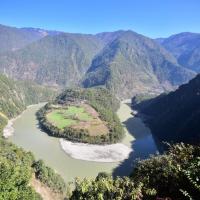 怒江第一湾位于丙中洛乡驻地的东南方向,湾中间有个三面环水的村寨子,居住在那里一定很舒服。丙中洛观景台是欣赏拍摄怒江第一湾的最佳位置。