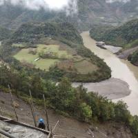 现在怒江第一湾在修路车子只能到第一湾观景台必须走路到丙中洛现在得翻山走路过去,完全没有路全是草里面走,建议的朋友最好过两年过来。