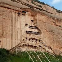 马蹄寺——古人的智慧真是无穷无尽啊,峭壁上修建寺庙,而且可以经历那么长时间的风风雨雨。佩服。峭壁上好多大小不一的洞,应该是以前施工留下来的,隐约可以看到以前施工的缩影。
