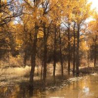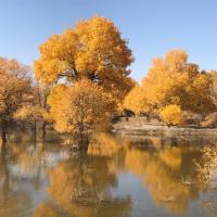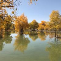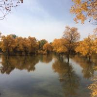 金塔胡杨林很惊艳,满目的金色倒映在湖面上,都分不出嘛边是真实,哪边是虚幻的!不枉专程绕道过去看