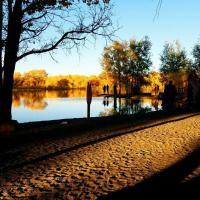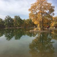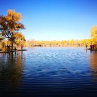 看金塔胡杨林就是要秋天去特别美,胡杨树的叶子由绿慢慢变成金黄色,在蓝天白云下的衬托下,金色的胡杨和倒影美的无法形容,只是黄的时间也就半个月左右,所以看的人也很多