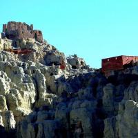 东嘎洞窟和皮央洞窟就在东嘎村和相邻的皮央村附近的土石山崖上,这是西藏迄今为止发现的最大一处佛教石窟遗址。集中在半山腰的3个洞窟中的东嘎壁画保存得较好。