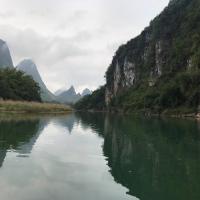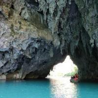 三门海水上天坑是典型的喀斯特地貌,老实说这样的景色广西遍地都是,唯一不同的就是这里的石山有地下河,坐着小船穿过三个山洞,观看所谓的天窗,可以说是别有洞天,游船进洞里面的,水很漂亮,整个人感觉进入仙境一样,简直太完美了。
