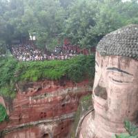乐山大佛坐落在四川乐山市。哎,爬上去累的半死啊,不过累的值得,非常的壮观,整个乐山佛坐在那儿,突然间显得自己多渺小啊。还是值得专门来看看的。爬爬阶梯,仰望大佛。人流多,排队是个问题。