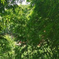 蜀南竹海漫山遍野的竹林,翠绿翠绿的,有鸟鸣有野花有山泉,空气清新游客不多,台阶好走,真是一个好去处。木坑村在半山腰,木坑对面的台阶有点陡,上年纪的老人走的时候要小心,带登山杖更好。景区有玻璃栈道可以选择。也可以步行上山,领略一路风景,近距离