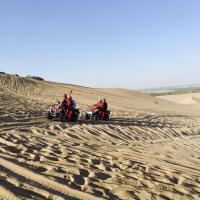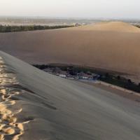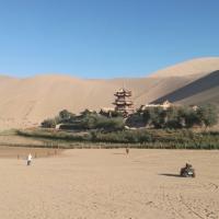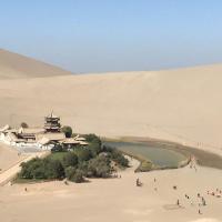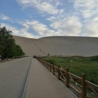 敦煌鸣沙山月牙泉已经算是很商业化的景区了,但另一方面,也正是有了相对完善的现代化设备,才方便大家游玩。进门以后觉得像个公园,不像个景区。一边是沙滩摩托、沙滩滑翔机,一边是骆驼和电瓶车。没有尝试沙滩滑翔机因为没时间了,感觉还是很刺激的。不知道