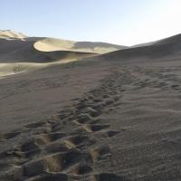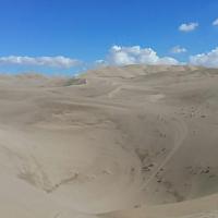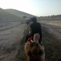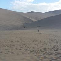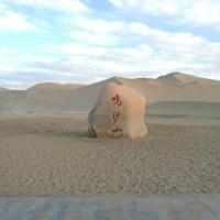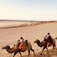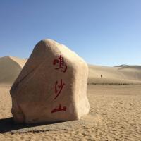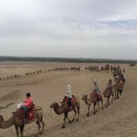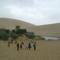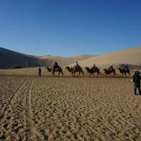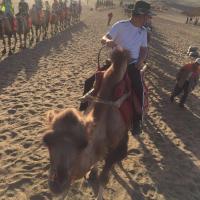 从敦煌去景鸣沙山点交通方便,3路公交终点即到,门票120元(60一70岁半价),性价比可以。进景点后是否租用鞋套、及坐电瓶车自便,本人均未釆用,因多次去过沙漠穿鞋套反显笨拙。进景区后化100元骑骆驼是不错的选择,4公里路有意思,一直到月牙泉