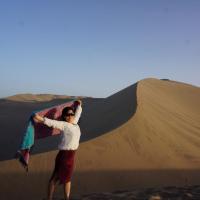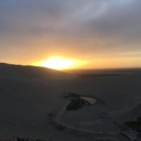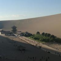 对于出生在东北工作在东南的我来说敦煌鸣沙山对我的触动太大了从来没有见过这样的景色我去鸣沙山的时候是七月底我上午参观了莫高窟中午回酒店休息了两个小时然后四点多去的鸣沙山因为中午的时候气温很高沙子很烫所以晚上在去而且一定要爬到沙山山顶看完日落日