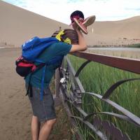 敦煌鸣沙山,风沙之中,感受西域大漠的苍凉。作为来自沿海省份的人,第一次见到沙漠的感受极为震撼。攀爬到沙丘顶端,看着头顶的烈日和远方的黄沙,心中豪迈陡生。景区可徒步,也可骑骆驼或者沙漠摩托,甚至可以选择直升机或者滑翔机。门口有租赁沙漠鞋套的地