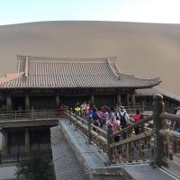 鸣沙山月牙泉:终于来到人流如织的景区,骑骆驼的人简直比张骞出使西域的队伍还庞大,沙漠山像是2D的,没有起伏没有层次没有任何植被点缀倒是有栏杆围着。月牙泉边一大堆绕泉的游客大呼小叫。怀念起那年在腾格里沙漠,夕阳下,就我俩骑着骆驼在大漠中穿行,