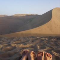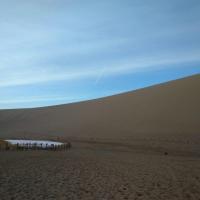 敦煌鸣沙山——先说几个经验,一定要租鞋套,别买一次性的鞋套,质量很差,骑骆驼都把一只脚的弄破了。后面走起路来很费劲。骑骆驼很好玩,100块包来回,应该体验一下,但要注意安全。骆驼骑的过程还是双手把住前面把手。我前面的骆驼由于前面的人在骆驼上