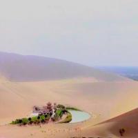 敦煌鸣沙山,无意间我看到了图1的照片,一直很想来,后来我实现了,来到月牙泉,感觉是那么的唯美,世界独一无二的天下奇观,沙漠中的绿洲!
