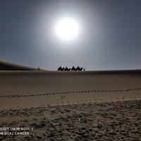 沙漠…敦煌鸣沙山月牙泉…美丽的风景,景区门票录取指纹三日内随意进出,但需要指纹+门票同时使用,这点很值得人赞赏。里面景色确实不错,月牙泉的水量越来越小了,但沙漠还是那个沙漠。里面骑骆驼100一圈,大约一小时+时间,很超值。牵骆驼的人会半路问