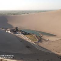 敦煌鸣沙山这里真的很奇妙!大漠之中竟然有一天然形成的泉湖,像月牙一样,里面放的音乐就是田震的月牙泉,大漠配上月牙泉真是美景中的战斗机!