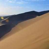 敦煌鸣沙山和月牙泉是大漠戈壁孪生兄妹,不可分割。从敦煌城向南,一眼就能看到连绵起伏的鸣沙山。鸣沙山沙漠延绵40公里,张开双臂拥抱着月牙泉。清晨,朝霞向鸣沙山洒下一片金黄,魅力无限!月牙泉则像沙漠里的明珠,散发着璀璨迷人的蓝色光辉!大美!大赞