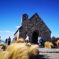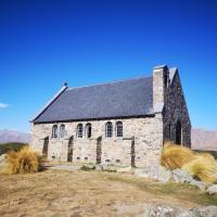 牧羊人教堂位于特卡波湖的岸边高处,建于1935年,以一只牧羊犬的雕塑而命名。这座教堂完全用岩石块垒砌而成,是特卡波湖明信片中的经典风景。在夜晚,星空下的教堂更是美轮美奂,同时也是拍摄星轨的绝佳地点。这座教堂记载了早期新西兰移民的历史,是对过去开创Mackenzie地区农田先驱者的一个称颂。