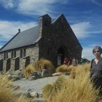 牧羊人教堂位于特卡波镇特卡波湖边上,位置极好,无论从哪个角度看教堂拍照都不错,非常漂亮!教堂不大,只能祈祷不能拍照,之所以出名,大概是因为是星空极好的陪衬。晚上聚集在这里拍摄星空的人很多。教堂正面的玻璃窗正好框住了蔚蓝的湖水,起伏的山峦,一