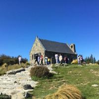 新西兰好牧羊人教堂,到了好牧羊人教堂,这里算是比较著名的景点,人稍微多了一点,不过和中国比起来,真的已经算人很少了!这个独特的教堂坐落于新西兰南岛特卡波湖岸边,背景是辽阔的山水风景和巍峨的高山,风景如画。