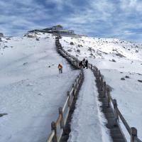 冬天的达古冰山属于淡季,人很少,风景确是另一番风味,进门后就有观光车,观光车每到一个景点就会停下来让我们拍照,观光车会坐到缆车处,坐缆车上顶后轻微高反,缆车是世界上海拔最高的,建议上去的人都带个氧气罐,不要跑,顶上有个咖啡厅可以喝咖啡!。处