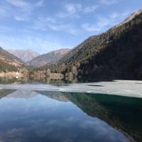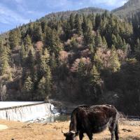 冬日的达古冰山实在是太美了!高山湖泊颜色分层,越往山上走被冰雪覆盖的地方越多,湖水开始结冰最后被冻住人可以在上面行走。山顶上更像一方净土。这里的蓝天、白云、树木、湖泊、高山、猴子、牦牛、山鹰都给我留下了很深刻的印象,不虚此行!
