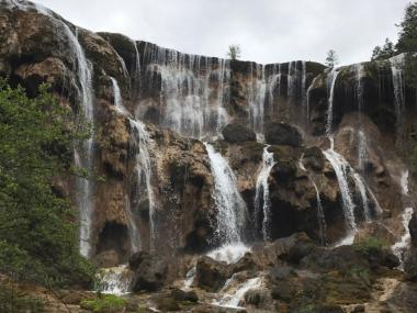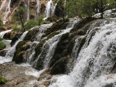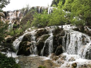 珍珠滩瀑布,是九寨沟最大的钙华瀑布,来自山中融化的雪水,从21米的高处冲进谷底,吼声如雷,卷起千堆浪花,这道激流水色泛白,是九寨沟所有激流中水势最猛,水声最大的一段。激流左侧栈道,是观赏瀑布的最佳点。珍珠滩瀑布瀑布底部空气清新,林木茂盛,踩着栈道,在激流的陪伴下继续东行,就到了珍珠滩东侧。瀑布的水因为含硫量高,不能饮用。...